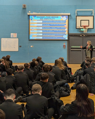 Yesterday, students in Years 9 and 10 at Shirebrook Academy were delivered an engaging assembly led by Lianna, our Food Education Specialist, exploring the huge range of careers that exist across the whole food system.